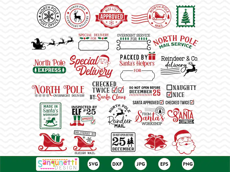 North Pole Santa Sack SVG Bundle | Christmas postage PNG